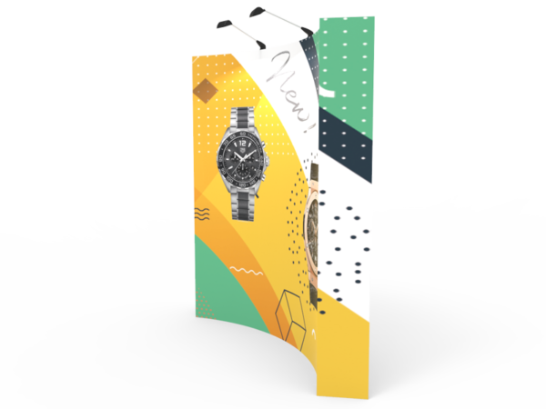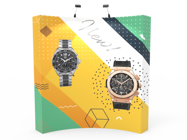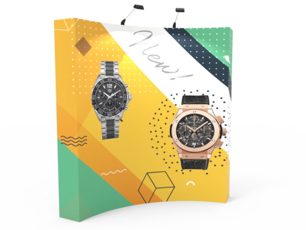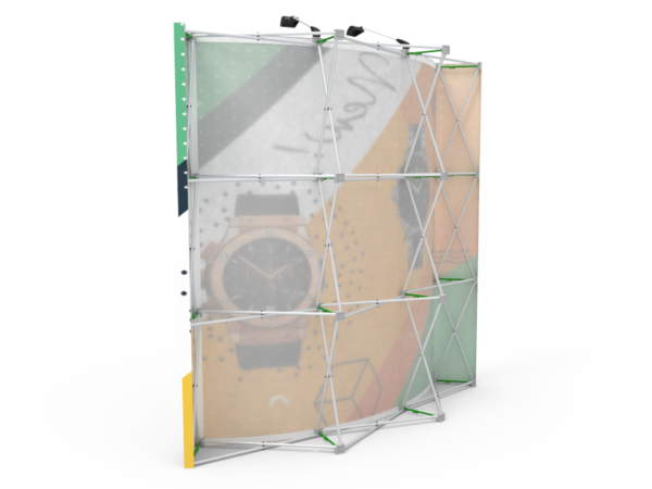 The Expanding Fabric 8ft Display is one of our fastest-assembling trade show exhibits, and the secret lies in its pop-up mechanism. With the one-piece fabric Perfect-Pop technology that easily attaches to the pop-up frame and its curved frame design, this exhibit booth appears flush and seamless, and assembles in only SECONDS! The entire display collapses and fits into a duffel bag. Perfect for conventions, tradeshows, and other events